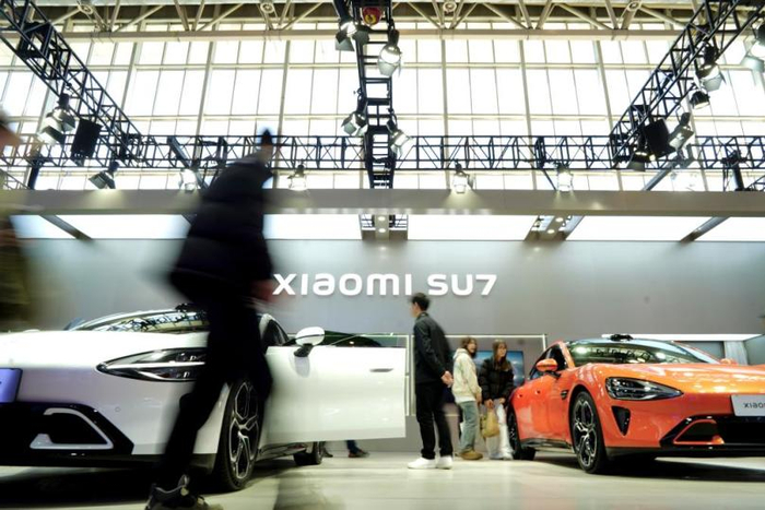 11月28日,人们在第二届中国国际供应链促进博览会智能汽车链展区小米汽车展台参观。新华社发(那宇奇摄)