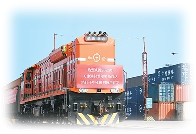近日,2025年首列天津港经霍尔果斯直达塔什干的中亚班列从天津港物捷三堆场发车。