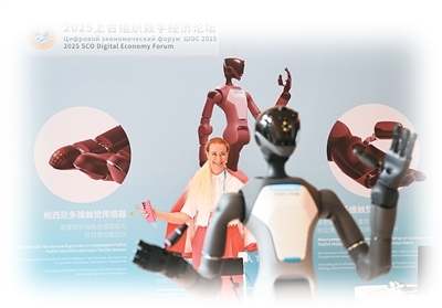 7月11日,嘉宾在2025上合组织数字经济论坛上体验操控人形机器人。